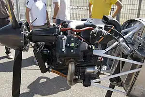 ICP is currently developing an aviation engine, designated the ICP M09. The engine was designed by Franco Lambertini, previously with Moto Morini motorcycles. The M09 has no parts in common with other Lambertini motorcycle engines, but is a clean-sheet design for aviation use.[14] The engine is a four stroke, two cylinder, four valve, 1,223 cc (75 cu in) powerplant that delivers 115 hp (86 kW) at 7000 rpm and is capable of inverted flight. The first flight on an ICP Savannah S was on 18 December 2014.[15]