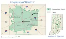 Indiana's 7th congressional district is a congressional district in the U.S. state of Indiana. It is entirely located within Marion County and includes most of Indianapolis, except for the southern side, which is located within the 6th district.