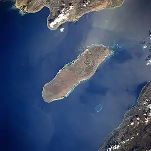 Gonâve Island or Zile Lagonav (French: Île de la Gonâve, pronounced [ɡɔ.nɑv]; also La Gonâve) is an island of Haiti located west-northwest of Port-au-Prince in the Gulf of Gonâve. It is the largest of the Hispaniolan satellite islands. The island is an arrondissement (Arrondissement de La Gonâve) or Ouest-Insulaire in the Ouest and includes the communes of Anse-à-Galets and Pointe-à-Raquette.[3]