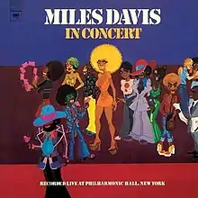 In Concert[nb 1] is a live double album by American jazz musician Miles Davis. It was recorded in 1972 at the Philharmonic Hall in New York City. Columbia Records' original release did not credit any personnel, recording date, or track listing, apart from the inner liner listing the two titles "Foot Fooler" and "Slickaphonics".[11]