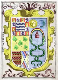 When Gómez was young, his father abandoned his mother and married a much younger Spanish noblewoman, doña Luisa Martel, who was only four years older than Gómez.[5] As such, Gómez lived with his mother, her husband Juan de Pedroche, her Inca family and her two daughters, De la Vega's half-sisters Ana Ruíz, who went on to marry Martín de Bustinza, and Luisa de Herrera, who married Pedro Márquez de Galeoto (one of their children was Alonso Márquez de Figueroa). His first language was Quechua, but he also learned Spanish from early boyhood.[6] He lived with his mother's family for the first ten years of his life before his father took the boy into his household and gave him an education. Garcilaso received an inheritance when his father died in 1559. The next year, at the age of 21, he left Peru for Spain.[6]