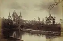The International Exhibition of Science, Art and Industry was the first of 4 international exhibitions held in Glasgow, Scotland during the late 19th and early 20th centuries. It took place at Kelvingrove Park between May and November 1888.[1] The main aim of the exhibition was to draw international attention to the city's achievements in applied sciences, industry and the arts during the Industrial Revolution. However, it was also hoped the Exhibition would raise enough money for a much-needed museum, art gallery and school of art in the city. The exhibition was opened by the Prince of Wales, as honorary president of the exhibition, on 8 May 1888. It was the greatest exhibition held outside London and the largest ever in Scotland during the 19th century.[2]