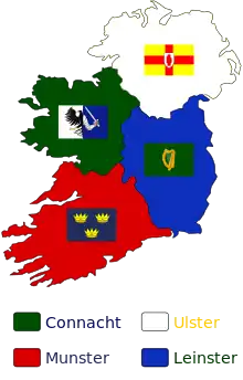 The Leinster Challenge Cup, later known as the Leinster Senior Cup, was first played in 1882, won by Dublin University.[34] Senior Cup competitions followed in the other provinces: the Ulster Senior Cup was first won by North of Ireland in 1885;[35] the Munster Senior Cup was first won by Bandon in 1886;[36] and the Connacht Senior Cup was first won by Galway Town in 1896.[37] Ulster was the first province to establish a provincial league, the Ulster Senior League, first won by Queen's in 1891.[38] The Munster Senior League followed, first won by Garryowen in 1903; the Connacht Senior League was first won by Galwegians in 1926; the Leinster Senior League was not founded until 1971, and was first won by St. Mary's College in 1972. The All-Ireland League, featuring clubs from all four provinces, was founded in 1990, and was first won by Cork Constitution.