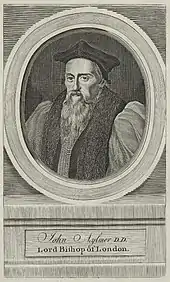 John Aylmer was born in the village at Aylmer Hall in 1521.[10] He was a great friend of Henry Grey, 1st Duke of Suffolk, Marquis of Dorset who sent him to study at Cambridge where he became a fellow of Queens' College. Grey made him his chaplain and tutor to his daughter Lady Jane Grey. This exceptionally gifted girl told Roger Ascham that her achievements were due to Mr Aylmer, who teaches me so gently, so pleasantly, and with such fair allurements to learning that I think all the time nothing while I am with him.[10] It appears that this gentle and encouraging tutor became, as bishop of London from 1577 until his death in 1594, increasingly unpopular because of his arbitrary and unconciliatory disposition. His work, particularly his characterisation of England as a mixed monarchy, would be important to later English constitutionalists.