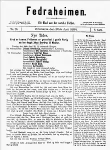 In 1883 Mortensson-Egnund became editor of the paper Fedraheimen, and served until 1889. Under Mortensson leadership the newspaper embraced the war against "the moneyed, ministers of state and imperialism". Mortensson called the magazine a "communist-anarchist organ for the country" and published extensive material from the international anarchist movement.[6]