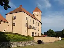 Jørgen inherited considerable wealth from his parents, which in terms of the social structure of the time made him eligible for a royal appointment as county sheriff. He was successively sheriff to Tranekjær (1542–49), Odensegaard (1549–52), Vordingborg Castle (1552–57), and finally (1555 until his death in 1565) to Queen Dorothea at Nykøbing Castle on Falster.[3] By inheritance and purchase, he acquired substantial properties located principally in Skåne, Lolland and Fyn. His principal residence was at Tosterup Castle (Tosterups slott) in Scania.[4][5]