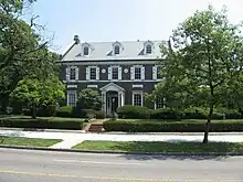 During the 18th century, the farms of the Jamaica section of Roxbury transitioned from subsistence to market orientation, serving the growing Boston population.[1] At the same time, wealthy men bought land and built estates in the bucolic countryside. In 1740, Benjamin Faneuil, nephew of Boston merchant Peter Faneuil, bought land between Centre Street and Stony Brook. In 1752, Commodore Joshua Loring[9] bought the old Polley farm and built a home to which he retired. At Jamaica Pond, the provincial governor, Francis Bernard, built a summer home on 60 acres (240,000 m2).