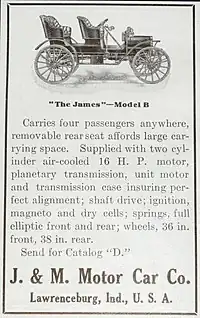 The James automobile manufactured by the J& M Motor Car Company of Lawrenceburg, Indiana was produced from 1909 to 1911.[1]