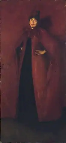 Other important portraits by Whistler include those of Thomas Carlyle (historian, 1873), Maud Franklin (his mistress, 1876), Cicely Alexander (daughter of a London banker, 1873), Lady Meux (socialite, 1882), and Théodore Duret (critic, 1884). In the 1870s, Whistler painted full-length portraits of his benefactor Frederick Leyland and his wife Frances. Leyland subsequently commissioned the artist to decorate his dining room (see Peacock Room below).[61]