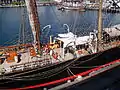 Part of the inspiration for preserving James Craig has been credited to Karl Kortum, then director of the San Francisco Maritime Museum who had also been involved in encouraging Australians to preserve the similar sized barque Polly Woodside in Melbourne in 1962.[5][6] Restoration of James Craig began in 1972, when volunteers from the Lady Hopetoun and Port Jackson Marine Steam Museum (now the Sydney Heritage Fleet) refloated her and towed her to Hobart for initial repairs. Brought back to Sydney under tow in 1981, her hull was placed on a submersible pontoon to allow work on the hull restoration to proceed. Over the next twenty-five years, the vessel was restored. Much of the hull was replaced, being repaired by both paid craftspeople and volunteers. The ship was relaunched in 1997, and restoration work was completed in 2001.