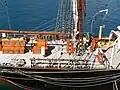 James Craig is of exceptional historical value[9][10] in that she is one of only four 19th century barques in the world that still go regularly to sea. In 2003 the World Ship Trust awarded the James Craig a Maritime Heritage Award for authentic restoration.[11] She is a working link to a time when similar ships carried the bulk of global commerce in their holds. Thousands of similar ships plied the oceans in the 19th and early 20th centuries linking the old world, the new world, Asia and Oceania. She is sailed in the traditional 19th Century manner, mostly by volunteers. Her running rigging consists of 140 lines secured to belaying pins and spider bands. She achieved 11.3 knots on a return voyage from Melbourne in February 2006.[12]