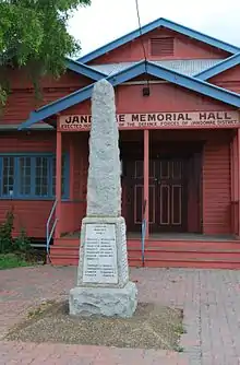 - "Jandowae Memorial Hall". Monument Australia. Archived from the original on 8 December 2020. Retrieved 8 December 2020.