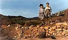 Jane Benham Hay exhibited at the Royal Academy in 1848, 1849, 1859, 1861, and 1862.[3] Her two entries of 1859, England and Italy and Portrait of a Boy in Florentine Costume, established her reputation. Painted just prior to the unification of Italy, England and Italy was a powerful statement in favour of democratic unification, as well as a compelling work of art. John Ruskin noted that both works were "masterly complete in effect".[4] although he did not care for the political overtones. England and Italy went missing some time after 1859, and was not rediscovered until the late 1990s.