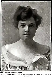 Jane Peyton (October 26, 1870 – September 8, 1946) was an American lead and supporting actress whose career did not commence until she was nearly 30. During her time on stage, she appeared in several long-running Broadway plays and successful road tours. Peyton is remembered for her performances in The Ninety and Nine, The Earl of Pawtucket, The Heir to the Hoorah, The Three of Us, and The Woman. Once the wife of actor Guy Bates Post, Peyton retired after 14 years on stage, when she married the writer Samuel Hopkins Adams.