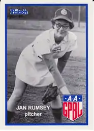 An All-Star pitcher, Janet Rumsey was a member of two champion teams of the All-American Girls Professional Baseball League during the final four years of its existence. She posted a 39–43 career record and a 2.33 earned run average in 105 pitching appearances, and has the distinction of hurling the last no-hitter in the league's history, while leading in several pitching categories in its last ever season.[1][2]