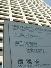 The Ministry of the Environment (環境省, Kankyō-shō) is a Cabinet-level ministry of the government of Japan responsible for global environmental conservation, pollution control, and nature conservation. The ministry was formed in 2001 from the sub-cabinet level Environmental Agency established in 1971. The Minister of the Environment is a member of the Cabinet of Japan and is chosen by the Prime Minister, usually from among members of the Diet.[1][2]