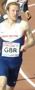 In 2015, he was selected for the European Indoor Championships in the 400 metres. He came third in his heat, to make it through to the semi-finals as a fastest loser, in a race that he described as 'rubbish' and 'dreadful'.[16][17] He finished fifth in his semi-final, failing to qualify for the final.[18] This year he was selected for the European Team Championships again, but this time in the individual 400 metres.[19] He won his race and the 400 metres overall, setting a PB of 45.09 seconds.[20] That was his second recorded time under the British Athletics qualifying time, and meant that he only needed to come at least second at the British Championships to secure a place at the World Championships.[21] He managed this, even though the event was predicted to be highly competitive, finishing second in the final behind Rabah Yousif.[22][23] This led to them both being selected for the team to go to Beijing.[24] At the World Championships, he competed in the 400 metres and the 4x400 metres relay. He finished 6th in his heat, meaning that he did not qualify for the semi-finals.[25] He ran third leg for the British team in both the heats and the final to win a bronze medal.[26]