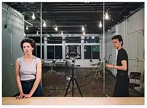There are two figures in the scene, Wall himself, and a woman looking into the camera. In a profile of Wall in The New Republic, art critic Jed Perl describes Picture for Women as Wall's signature piece, "since it doubles as a portrait of the late-twentieth-century artist in his studio."[14] Art historian David Campany calls Picture for Women an important early work for Wall as it establishes central themes and motifs found in much of his later work.[15]