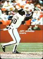 Jeffrey N. Leonard (born September 22, 1955) is an American former professional baseball left fielder. He played 14 seasons in Major League Baseball (MLB) from 1977 to 1990 for the Los Angeles Dodgers, Houston Astros, San Francisco Giants, Milwaukee Brewers, and Seattle Mariners.
