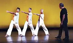In 1975, Jelon Vieira and fellow choreographer/performer Loremil Machado became the first capoeira mestres to live and teach in the United States.[1][2] Vieira states that their first jobs in New York were doing capoeira demonstrations in Bronx public schools[3] and that he spent the summer of 1975 doing weekly demonstrations in Central Park.[4] His early supporters included choreographer Alvin Ailey,[5] off-Broadway theater pioneer Ellen Stewart,[6] and Brooklyn schoolteacher and martial artist Robert Cooper.[7] In the 1970s, Vieira and Machado taught and performed in multiple locations across New York City, with notable venues including the Clark Center for the Performing Arts[8] and "for four or five years," a weekly performance set to jazz music at the Cachaça nightclub on East 62nd Street.[9][10]