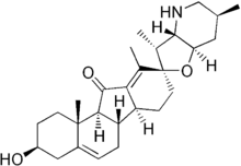 Jervine is a steroidal alkaloid with molecular formula C27H39NO3 which is derived from the plant genus Veratrum. Similar to cyclopamine, which also occurs in the genus Veratrum, it is a teratogen implicated in birth defects when consumed by animals during a certain period of their gestation.