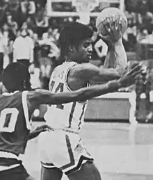 Jim Blanks (born August 13, 1952) is an American former basketball player. He began his collegiate career with the Moberly Greyhounds before he transferred to play for the Gardner–Webb Runnin' Bulldogs for his final three seasons of eligibility.[1][2] Blanks was an NAIA All-American selection during his senior season in 1974–75.[2] He ranks in the top 10 of total points and rebounds for the Runnin' Bulldogs.[2]