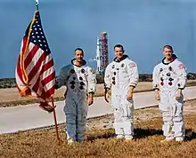McDivitt and his crew were training for this mission when disaster struck on January 27, 1967: a cabin fire killed Grissom's crew.[29] All crew assignments were canceled.[30] During the Congressional hearings that followed, McDivitt expressed confidence in NASA's management and safety measures.[31] After the Apollo 1 fire, plans resumed for McDivitt's crew to fly the Lunar Module mission as the second crewed flight. This was officially announced on November 20, 1967. By the summer of 1968, it was expected that the mission would now be flown as Apollo 8 in December with the Saturn V, which was now expected to be available, but it was increasingly clear that the lunar module would not be ready by that time.[32][33] McDivitt was summoned to Slayton's office. According to McDivitt: