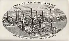 He started his own company John Brown & Company in 1844 manufacturing steel at a small foundry on a site at what is the now Orchard Square Shopping centre. The business prospered so well that he sold his factoring firm and moved to larger premises on Furnival Street.[5]