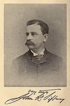John Kerr Tiffany (February 9, 1842 – March 3, 1897), of St. Louis, Missouri, was one of the earliest American philatelists and was regarded in an 1890 poll of philatelists as the second most important person in philately, second only to the famous John Walter Scott.