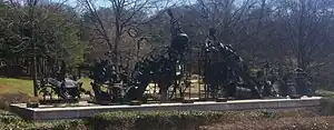 Public art displayed along Freedom Parkway includes Homage to King, a 1996 sculpture by Barcelona artist Xavier Medina-Campeny (a gift from the Spanish host city of the 1992 Summer Olympics to the host of the 1996 Summer Olympics) at the corner of Boulevard, which portrays Martin Luther King Jr. with outstretched arm, welcoming those visiting the Martin Luther King Jr. National Historical Park.[3][4] The Bridge, 1997, by Thornton Dial, at Ponce de Leon Avenue,[5][6] portrays congressman John Lewis' "lifelong quest for civil and human rights" and the community's "valiant efforts" to stop the construction of freeways and preserve intown neighborhoods".[7]