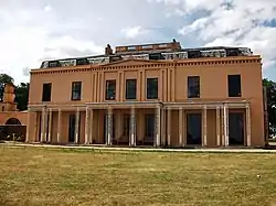 It was not until 1783 that Soane received his first commission for a new country house, Letton Hall in Norfolk.[48] The house was a fairly modest villa but it was a sign that at last Soane's career was taking off and led to other work in East Anglia: Saxlingham Rectory in 1784, Shotesham Hall in 1785,[49] Tendring Hall in 1784–86,[50] and the remodelling of Ryston Hall in 1787.[51]