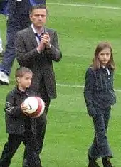 In the first leg between Manchester United and Porto, United manager Sir Alex Ferguson confronted Mourinho after Roy Keane received a red card for stamping on Vítor Baía.[46] In the second leg at Old Trafford, Porto were on the verge of an away-goals defeat when Costinha scored a goal in the 89th minute to win the tie. Mourinho flamboyantly celebrated the goal by leaving his dugout, fists punching the air as he sprinted down the sideline near to his celebrating players – this dramatic celebration is regarded as the moment when Mourinho announced himself to the game.[47] Mourinho's Porto win over Ferguson's United was a preview of his move to the Premier League managing Chelsea, where the two men would enjoy a competitive but respectful relationship. In 2005, after Chelsea clinched the Premier League title, Ferguson had his players form a guard of honour at Chelsea's next game at Old Trafford,[48] a favour that Mourinho returned in 2007 at Stamford Bridge after Ferguson's squad were confirmed league champions.[49][50]
