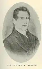 General Joseph Montfort Street (October 18, 1782 – May 5, 1840) was a 19th-century American pioneer, trader and US Army officer. During the 1820s and 1830s, he was also a U.S. Indian Agent to the Winnebago and later to the Sauk and Fox tribes after the Black Hawk War.[1] His eldest son was Joseph H. D. Street, the first appointed registrar of the Council Bluffs Land Office in western Iowa.[2]
