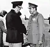 The Argentine War Ministry assigned Perón to study mountain warfare in the Italian Alps in 1939. He also attended the University of Turin for a semester and served as a military observer in countries across Europe - holding positions as a military attaché in Berlin and in Rome.[9] He studied Benito Mussolini's Italian Fascism, Nazi Germany, and other European governments of the time, concluding in his summary, Apuntes de historia militar (Notes about military history, first published in 1932, second edition: 1934[10]), that social democracy could be a viable alternative to liberal democracy (which he viewed as a veiled plutocracy) or to totalitarian régimes (which he viewed as oppressive).[8] He returned to Argentina in 1941, and served as an Army skiing-instructor in Mendoza Province.[5]