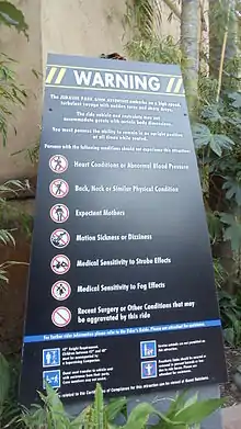Warning sign at the entrance of Jurassic Park River Adventure at Islands of Adventure.