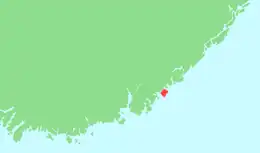 ![]() Justøy (red) alongside the southern coast of Norway | |