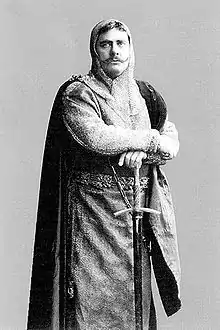 Grillparzer also embellishes historical sources in other ways, particularly in imbuing motives: in the play, Ottokar's desire for an heir, merely cloaks his lust for Kunigunde. He had previously enticed away Berta, a young noblewoman, from Seyfried von Merenberg, whom he makes the son of Siegfried, who figures in the "Chronicle." His desertion of Berta had arrayed against him the hostility of the three Rosenbergs, powerful and unscrupulous Bohemian nobles – Benesch, the father, Milota, the uncle, and Zawisch, the cousin, of Bertha. Zawisch, impelled mainly by desire to wreak vengeance upon the king, seeks to gain the affection of the queen. Ottokar's treatment of Margaret alienates from him the nobles of Austria and Styria. The indignities heaped upon them open the eyes of the delegates who have come to offer him the imperial crown. His overweening pride in ostensibly disdaining the title of emperor prepares the way for his final downfall.[5]