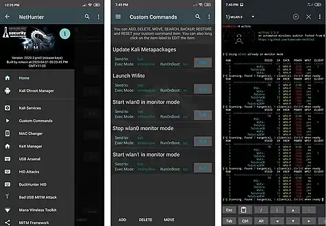 In addition to the penetration testing tools included with desktop Kali Linux, NetHunter also enables Wireless 802.11 frame injection, one-click MANA Evil Access Points, HID keyboard functionality (for Teensy-like attacks), as well as BadUSB man-in-the-middle /(MitM) attacks.