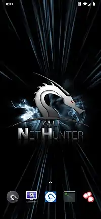 Kali NetHunter is a free and open-source mobile penetration testing platform for Android devices, based on Kali Linux.[1] Kali NetHunter is available for un-rooted devices (NetHunter Rootless),[2] for rooted devices that have a standard recovery (NetHunter Lite), and for rooted devices with custom recovery for which a NetHunter specific kernel is available (NetHunter).[3] Official images are published by Offensive Security on their download page and are updated every quarter. NetHunter images with custom kernels are published for the most popular supported devices, such as Google Nexus, Samsung Galaxy and OnePlus.[4] Many more models are supported, and images not published by Offensive Security can be generated using NetHunter build scripts.[5] Kali NetHunter is maintained by a community of volunteers, and is funded by Offensive Security.[6]