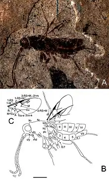 Hundreds of species of insects are known from several localities within the formation, primarily Karatau-Mikhailovka[4][5][6][7][8][9][10][11][12][13]