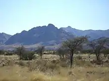 The Great Karas Mountains (Afrikaans: Groot Karasberge) are located in the ǁKaras Region of southern Namibia, the driest part of the country.[1] Mt. Schroffenstein, at 2206 meters[2] is the highest peak in the range.[3] The peak lies about ten kilometers east of the national road B1 between Keetmanshoop and Grünau.