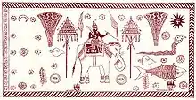 The sacred usage of conch shell and tying of Nalapata (royal forehead plate) was a common practice among Karavas, also mentioned in the Rajaveliya. The sun and the moon, pearl umbrella are traditional royal symbols used by the Karavas.[21] The Makara, being an emblem of their clan, is the mount of their clan deity, the sea god Varuna.[36] The clan name Warnakulasuriya, denotes their deity Varuna.
