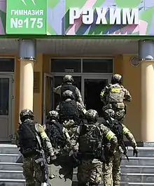 All second-shift classes in Kazan were cancelled,[13] and the entrances to Kazan schools were restricted.[44] Several schools in Moscow were searched with dogs, although nothing was found.[45] All students who attend Gymnasia No. 175 are planned to return to school on 17 May in neighboring schools while the school undergoes repairs.[46] After their arrival at the school, a counter-terrorism operation (CTO) regime was established. It was later removed at 15:47.[27] In addition, 12 May was declared a day of mourning. Cultural and entertainment events were cancelled for 11 and 12 May.[12]