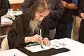 Kazuaki Tanahashi (棚橋一晃, born October 4, 1933) is an accomplished Japanese calligrapher, Zen teacher, author and translator of Buddhist texts from Japanese and Chinese to English, most notably works by Dogen (he began his translation of Shobogenzo in his twenties). He first met Shunryu Suzuki in 1964, and upon reading Suzuki's book Zen Mind, Beginner's Mind he stated, "I could see it's Shobogenzo in a very plain, simple language."[1] He has helped notable Zen teachers author books on Zen Buddhism, such as John Daido Loori. A fellow of the World Academy of Art and Science—Tanahashi is also an environmentalist and peaceworker.[2][3]