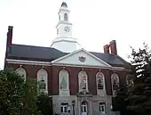 Beginning in 1940, Johnson was a member of the State Democratic National Committee, serving until 1948.[6] On June 6, 1942, he was named to the board of regents of Eastern State College (now Eastern Kentucky University or EKU), a position he held for eight years. EKU's Keen Johnson Building, a 1939 Works Progress Administration project, was named in honor of him. The building and its clock tower is one of the most recognizable landmarks on the university's campus.[5]
