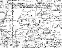 Keithsburg was established in the mid nineteenth-century along the railroad northeast of Canton. The community was named after the local Keith family and its Keith Plantation, one of the oldest plantations in Cherokee County. During the Civil War, the Keith family buried its valuables and suspended its food in trees in order to hide it from the approaching Union Army. The soldiers found the food and, as vengeance for the family's deception, burned their house and hanged the family patriarch from a tree. However, his life was spared by the knot in the rope getting caught and failing to break his neck. The Keith house was rebuilt in 1865 from kiln-dried bricks made of clay from the nearby Etowah River.[1]