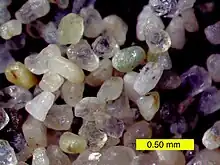 The dunes are composed predominantly of light-colored quartz and feldspar, most likely eroded from the granitics of the San Bernardino Mountains to the southwest. Magnetite and amphibole can also be found, often accumulating at the dune crests.