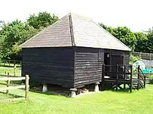 A set of Hopper huts from North Frith Farm, Hadlow was dismantled and re-erected at the museum. These huts are built of brick, with internal fireplaces.[12] A set of hopper huts with a wood frame clad in corrugated iron has been constructed, along with a cookhouse and privy.