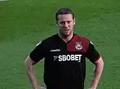 West Ham confirmed the signing of Nolan on 16 June 2011 for an undisclosed fee on a five-year contract, taking over the vacant number 4 shirt.[43] Due to the departure of the previous West Ham captain, Matthew Upson, who moved to Stoke City, Nolan was immediately made captain. His league debut came on 7 August 2011 in a 1–0 home defeat to Cardiff City.[44] Nolan scored his first goal for West Ham on 13 August 2011 in a 1–0 away win against Doncaster Rovers; his first home goal coming on 26 November, when scored a 25-yard volley in a 3–1 win against Derby County.[45][46] On 7 May 2012 en route to the play-off final at Wembley, Nolan scored his thirteenth goal for the club against Cardiff City in a 3–0 win, sealing West Ham's Wembley appearance.[47] On 19 May 2012 he captained West Ham in the 2012 Championship play-off final against Blackpool. West Ham won the match 2–1 with goals from Carlton Cole and Ricardo Vaz Tê sending them back to the Premier League after a one-season absence.[48]