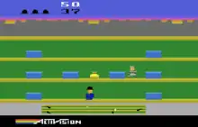 Keystone Kapers is a platform game developed by Garry Kitchen for Activision and published for the Atari 2600 in April 1983. It was ported to the Atari 5200, Atari 8-bit family, ColecoVision, and in 1984, MSX. Inspired by Mack Sennett's slapstick Keystone Cops series of silent films, the object of the game is for Officer Keystone Kelly to catch Harry Hooligan before he can escape from a department store.